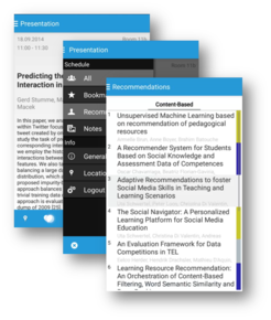 With the goal of providing support for the conference organizers as well as conference attendees, the i-KNOW conference, organized by the Know-Center, uses a self-developed conference assitant mobile application. This is done by providing a fast access to the conference schedule, location of the session rooms, information on speakers as well as details on talks and other related events.